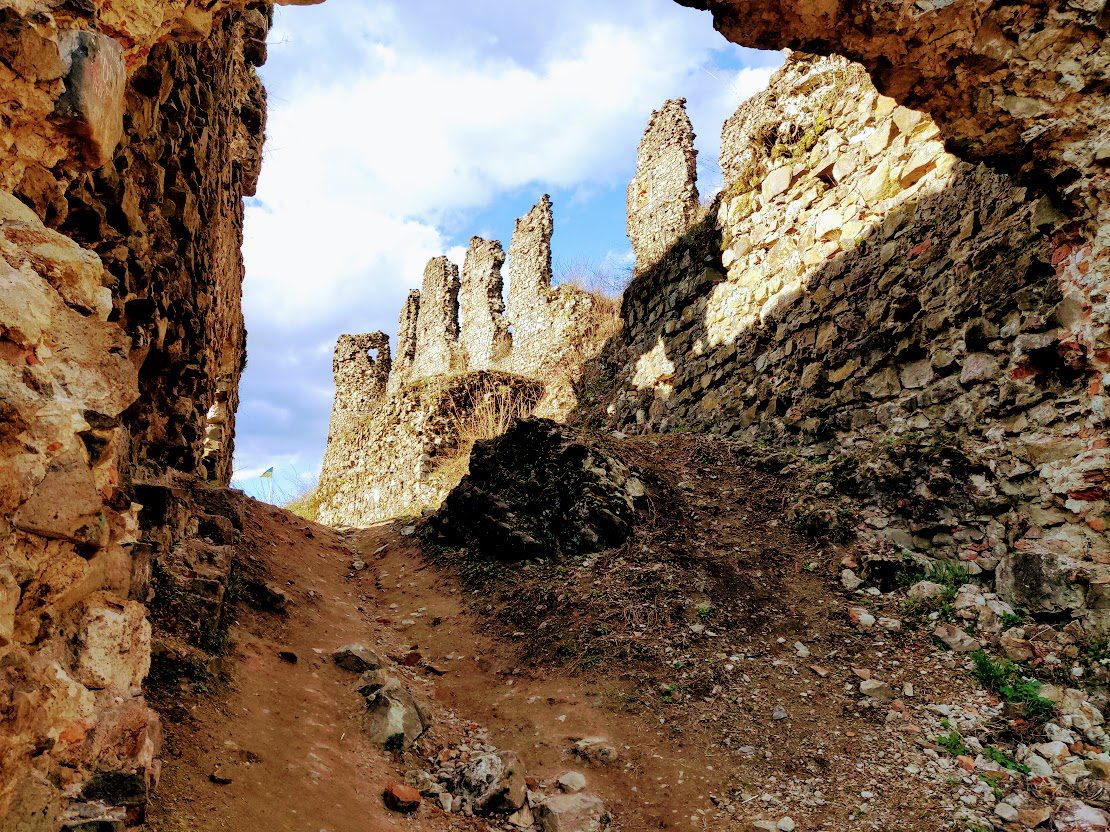 Сохранили и проездную часть. По дороге можно спокойно дойти до остатков замка, но для автомобилей она все же закрыта. Были даже попытки принять участие в нескольких грантовых проектах от общественных деятелей по восстановлению замка, но это требует больших средств, да и замок надо строить с нуля. Поэтому для туристов это лишь замечательная локация для фотографий.