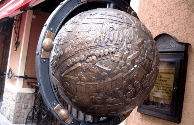 • “Глобус Ужгорода”, що є класним доповненням до дизайну одного із ближніх ресторанів. Ну а чому і ні? То потрібно бачити, але спробуємо вам пояснити одним реченням, і для того, щоб ви не мучили себе думками, додамо фото. Це чудо являє собою величезну кулю із рельєфним зображенням старих вулиць, споруд, історичних пам’яток міста.